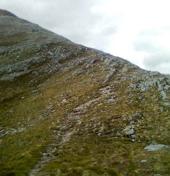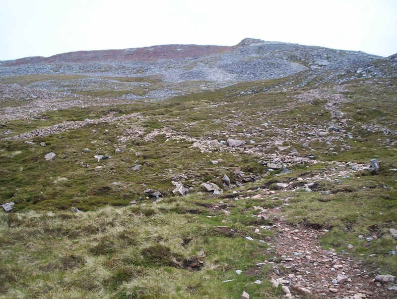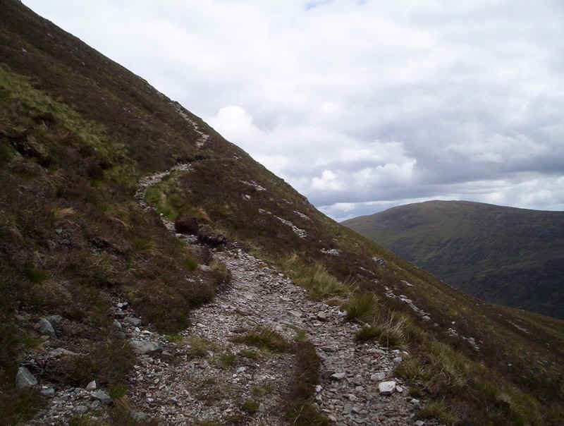 The path climbs gently uphill across the slopes of Meall an Doire Dharaich....