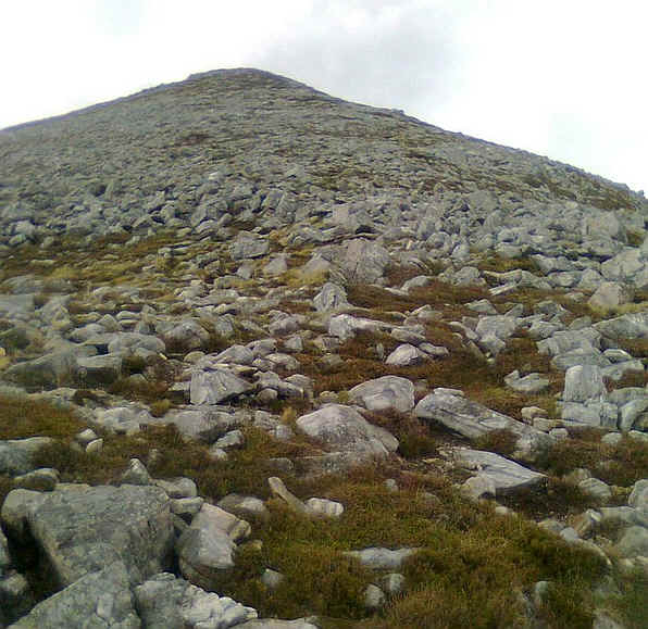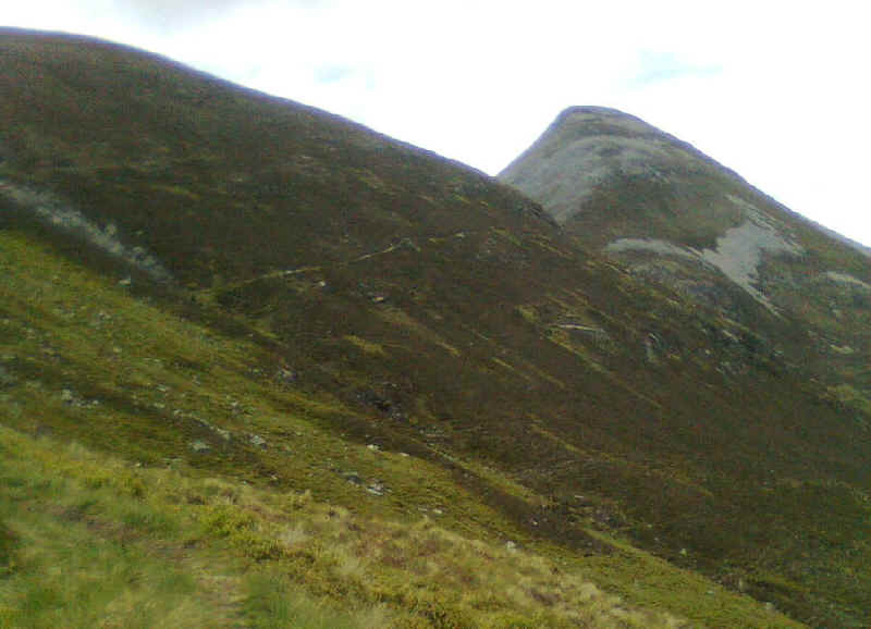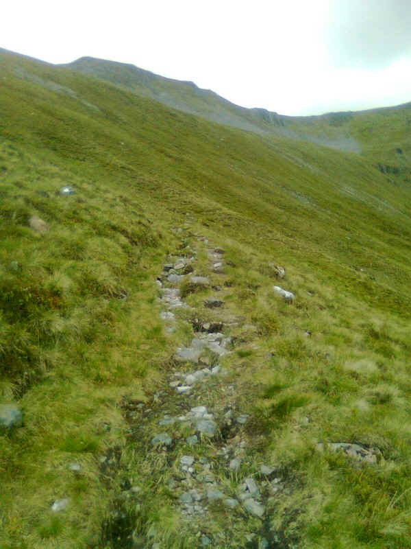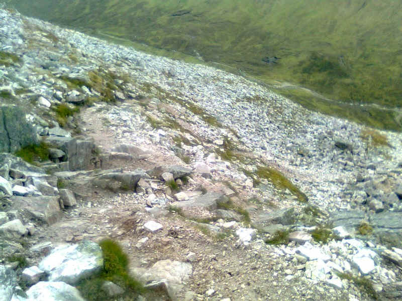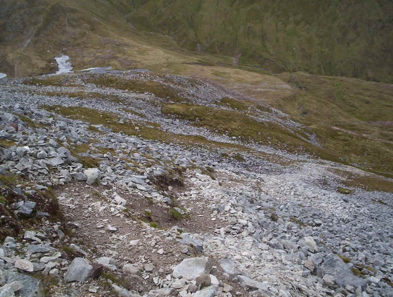 ....and starting the climb up the eastern flanks of Binnein Mor. It was here that I had a rather unnerving experience when a boulder about a foot across bounced sown the hillside and across the path about a hundred feet in front of me. Quite what had caused this I don't know but it was a reminder of how danger sometimes comes from unexpected sources.