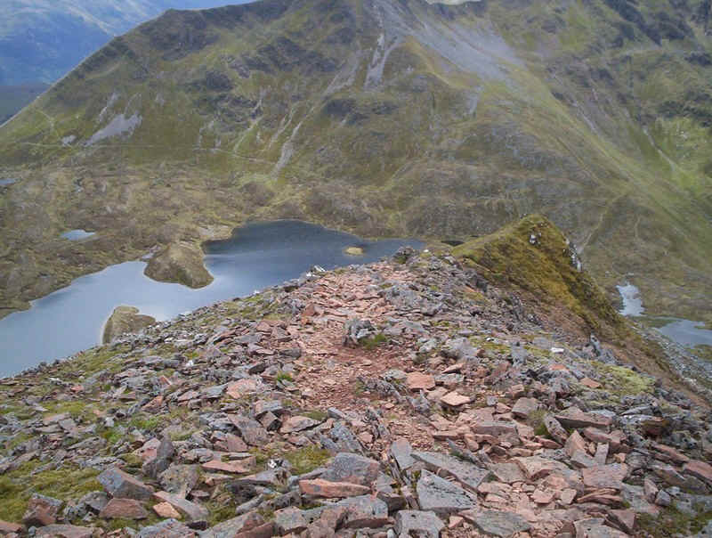 The photograph above shows the whole of the next stage of the walk along a superb path to the col just below Binnein Beag and then up the ridge to the summit.