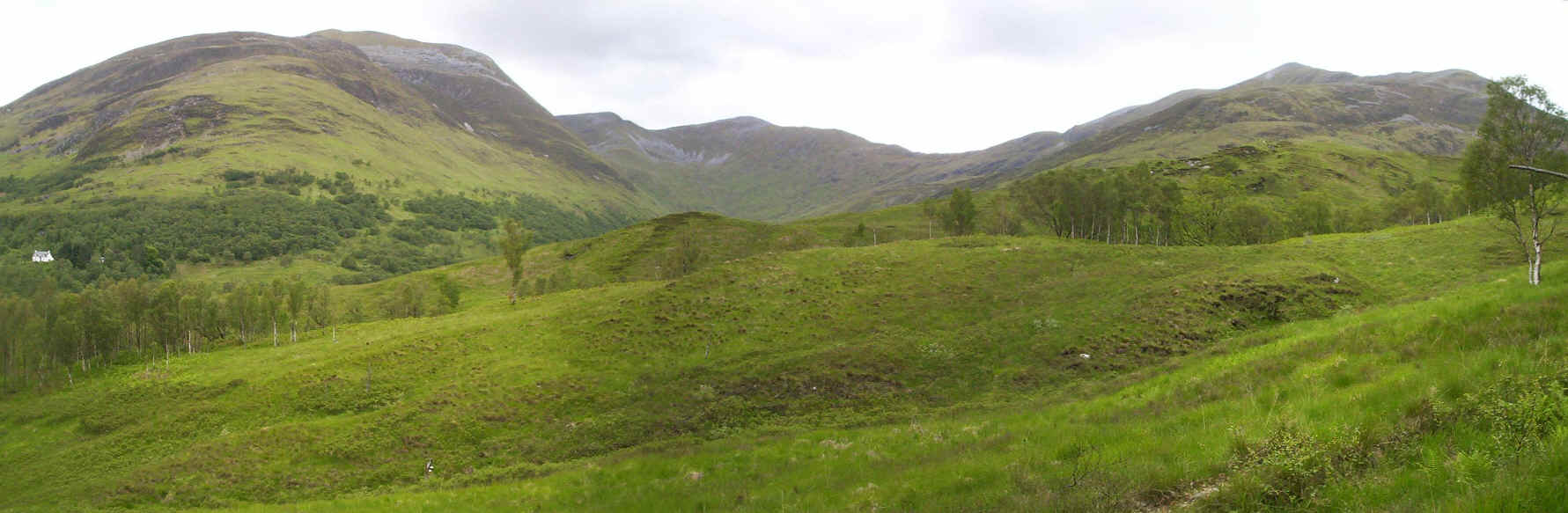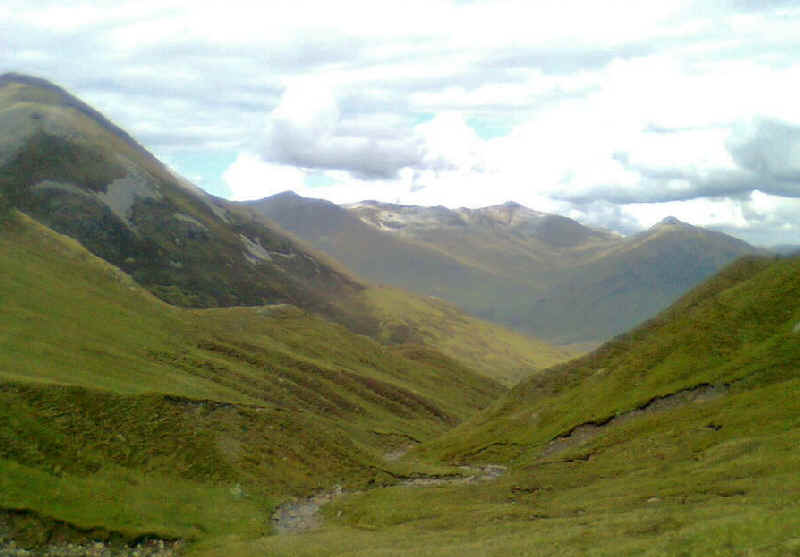 Looking backwards towards Coire and Lochain with the Glencoe mountains in the background.