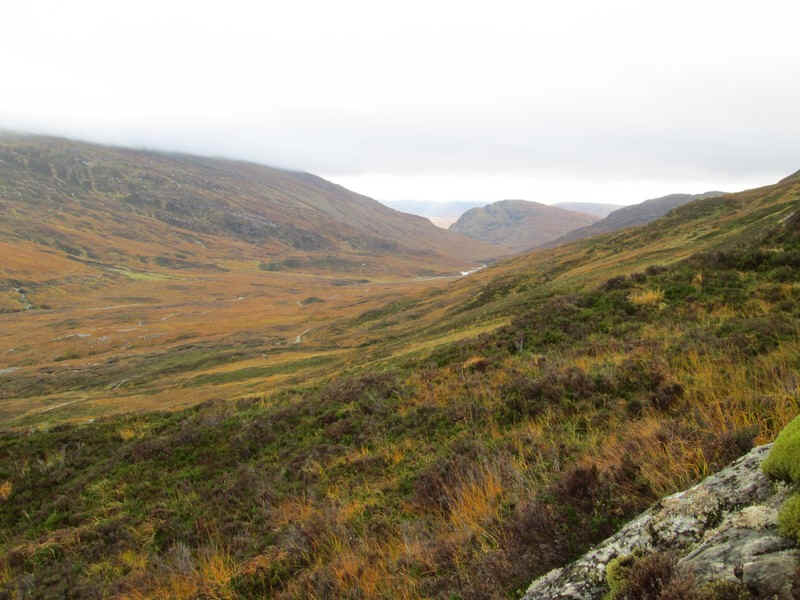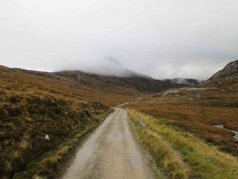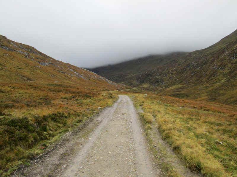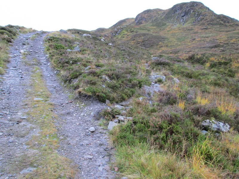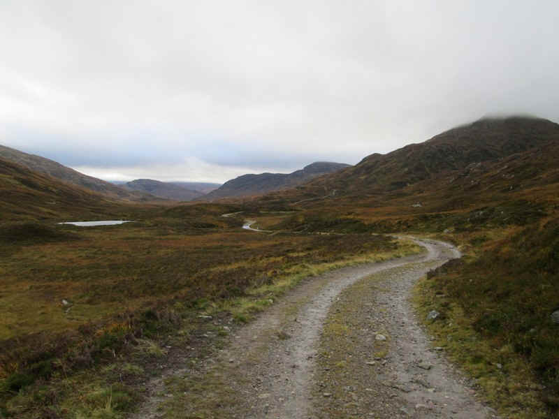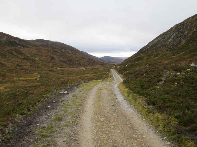 From the bealach the drove road falls gently...