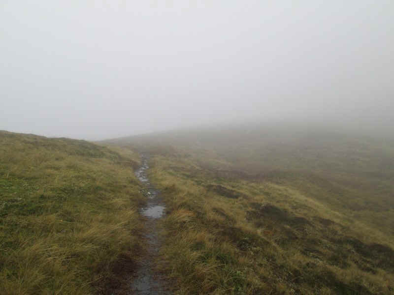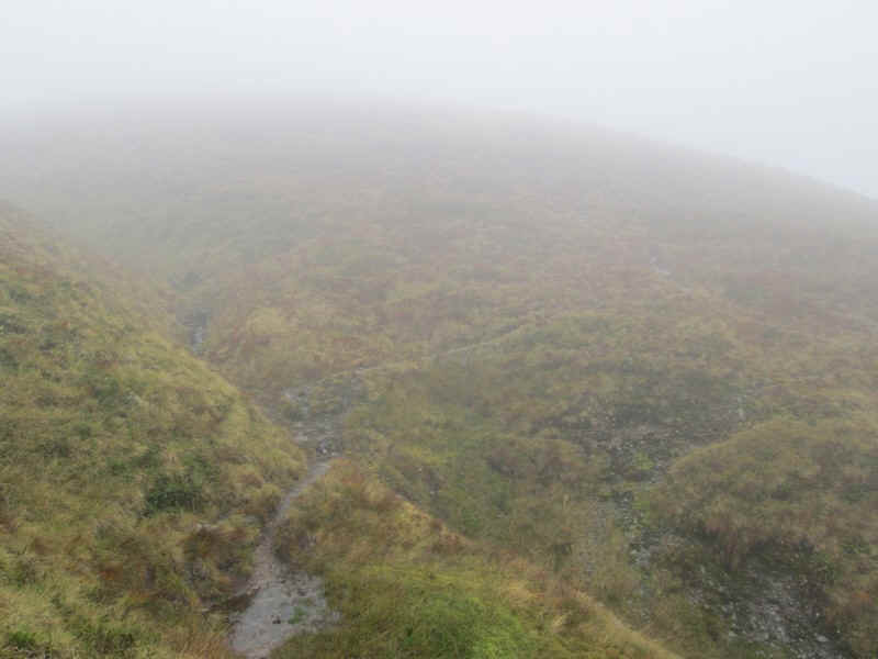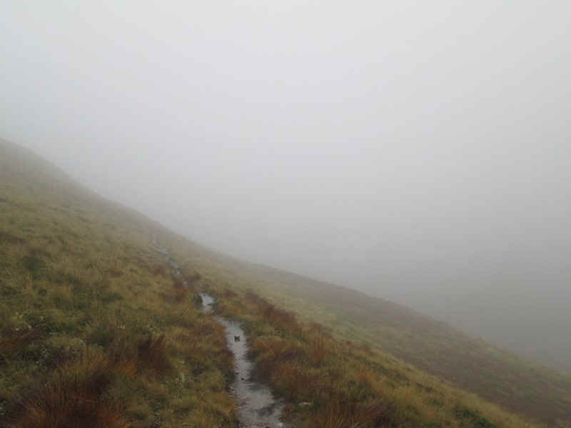 On the way downhill there was a slight improvement in visibility - just to the right of Sgurr Inse the waters of Loch Treig can be seen.