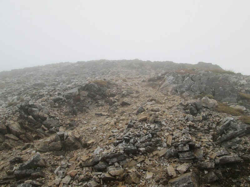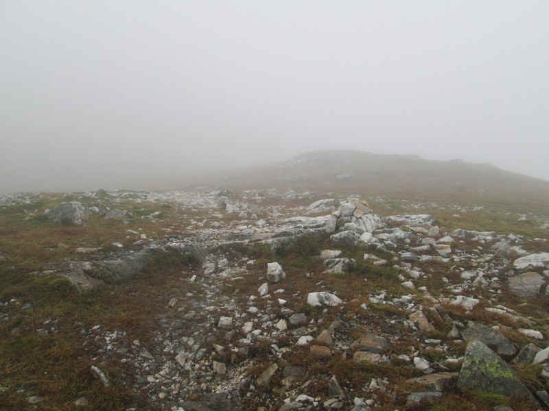 ...small cairn. Sadly there were no views but Munro number 139 was 'in the bag'. The climb from the bothy had taken exactly one and a half hours.