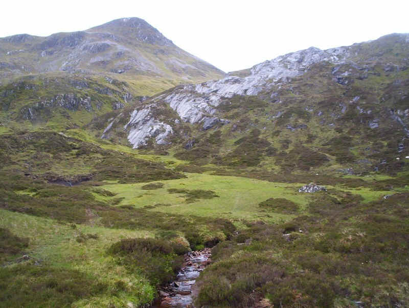 Whilst in October 2013 I had no view of Stob Ban, this photograph from 2011 shows it viewed from the path by the Allt a' Chuil Choirean.