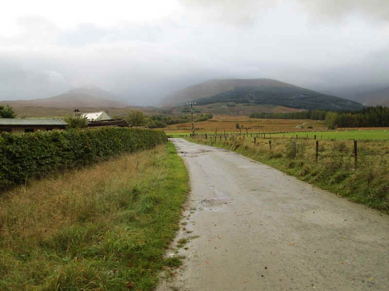 At Coire Choille Farm the hills come properly into sight although on this October day there weren't going to be many views.