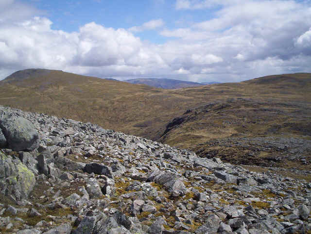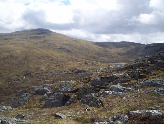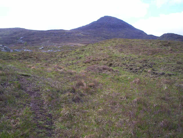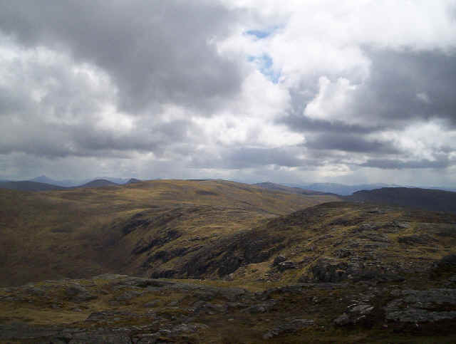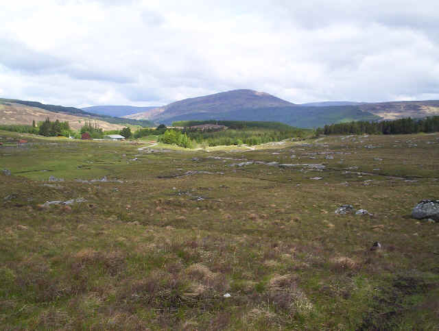 We did this walk in May 2005 starting from Fersit. After crossing the railway and going past the farm along the land rover track we turned off south south east onto onto the rough and rather boggy moorland. The picture is looking back to Fersit.