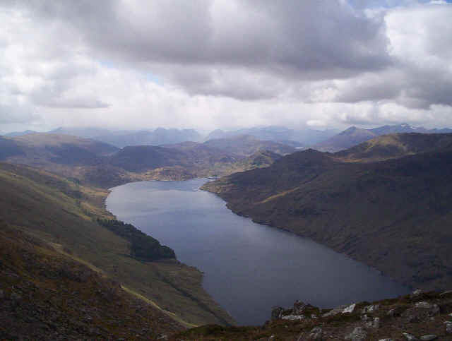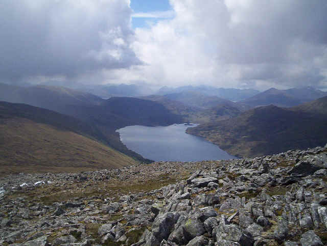 The view from the summit of Chno Dearg towards Loch Laggan.