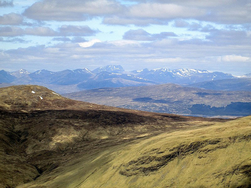 A zoomed shot looking towards Bidean nam Bian (23 miles away) and Buchaille Etive Mor. Look careully in the centre of the photo and the waters of Loch Ba on Rannoch Moor can be seen.