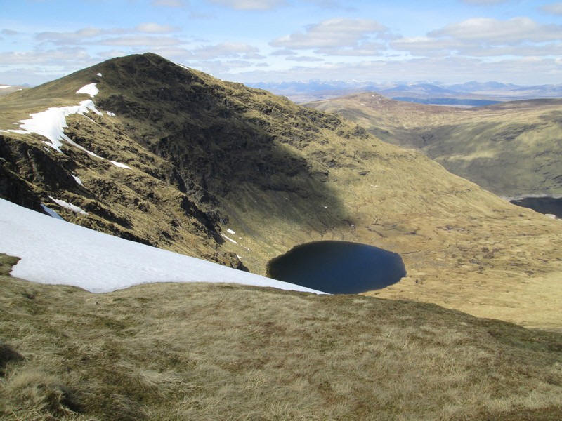 Looking down to the loch. Beyond is Meall Buidhe which I had considered climbing on the same day as well. Not so sure now!!