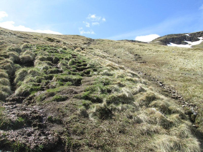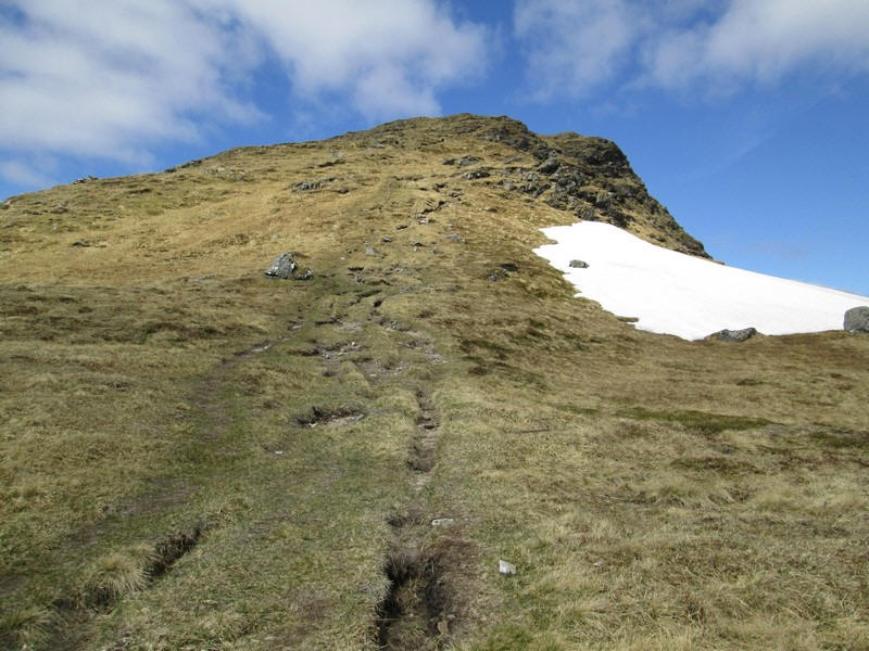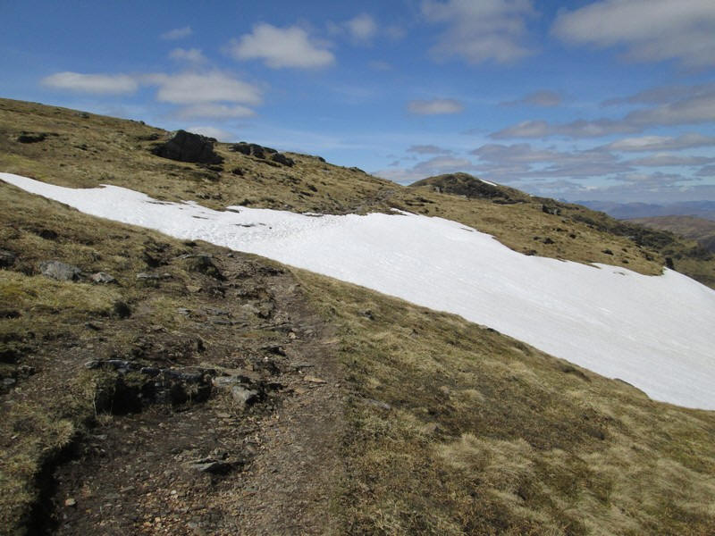 Despite carrying my Yaktraxs and microspikes in anticipation of having to cross snow, this was the only time I needed to cross any and even here I could have walked around it. I should perhaps explain that the MWIS forecast warned of siginificant lying snow remaining.