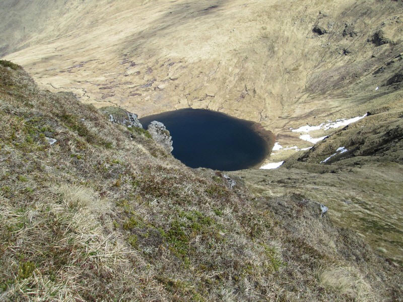 I was rather surprised to find the path really close to the edge with a big drop that would have worried me in the past. Nevertheless on the way down I kept well away from the drop. The lochan is about 250m (over 800 feet) lower down.