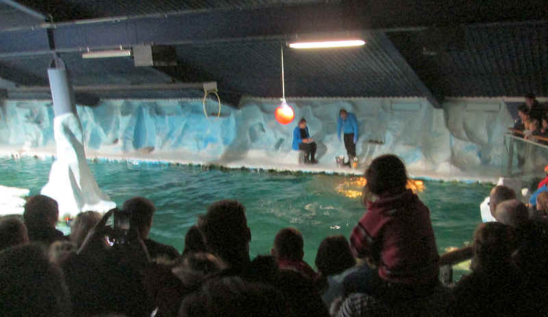 There are glass tunnels under the pool which allow you to see the seals swimming.