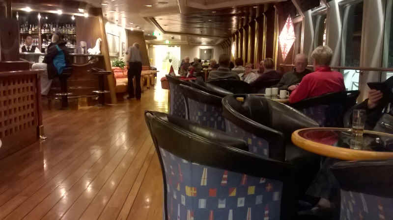 On leaving Honnigsvåg we passed on the opportunity to have hot chocolate and apple pie as we'd just bought lunch (a sandwich from the shops in the town) but we did go to the short film about the Sami people of northern Norway.. The previous evening the ship had rolled about quite a bit whilst were in bed but as we were now heading out into the Barents Sea it started to roll and heave again, much to the discomfort of some of the audience who had to leave in a hurry. I even had to steady a older woman walking in front of me as she lurched to one side!