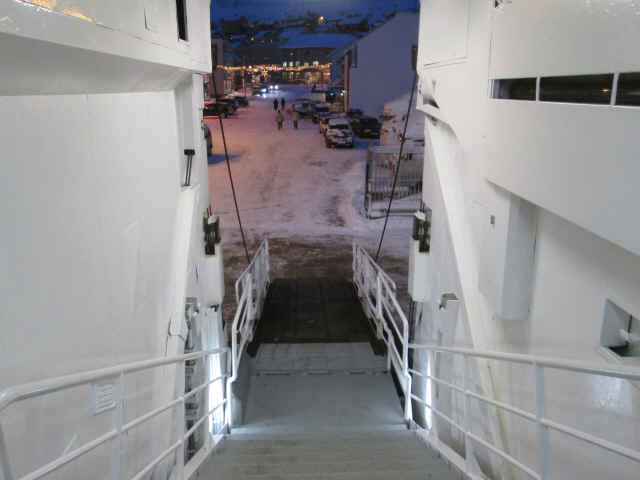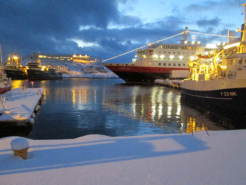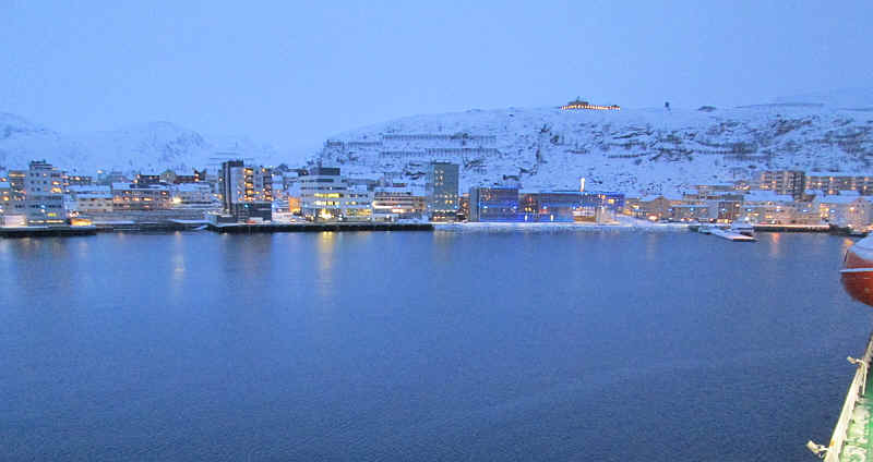 During the night the ship called at Øksfjord and Hammerfest, ports that we'd see on our return journey.