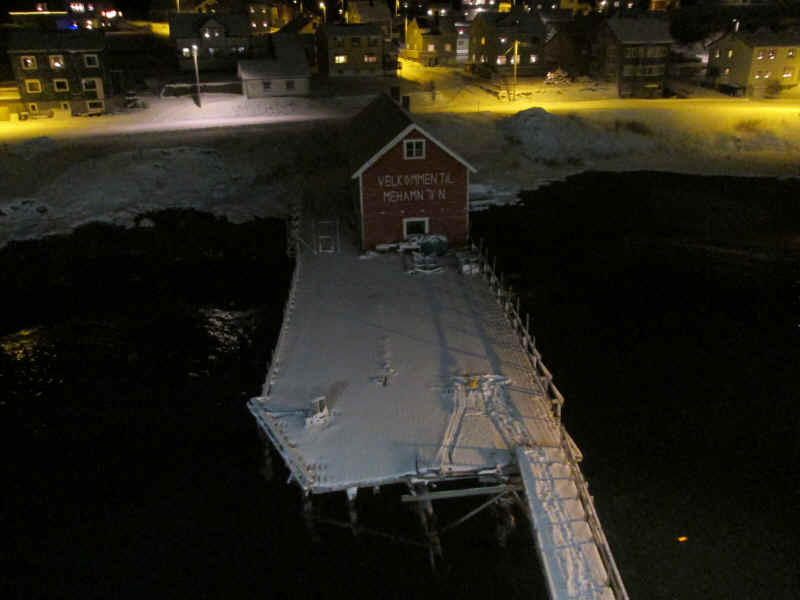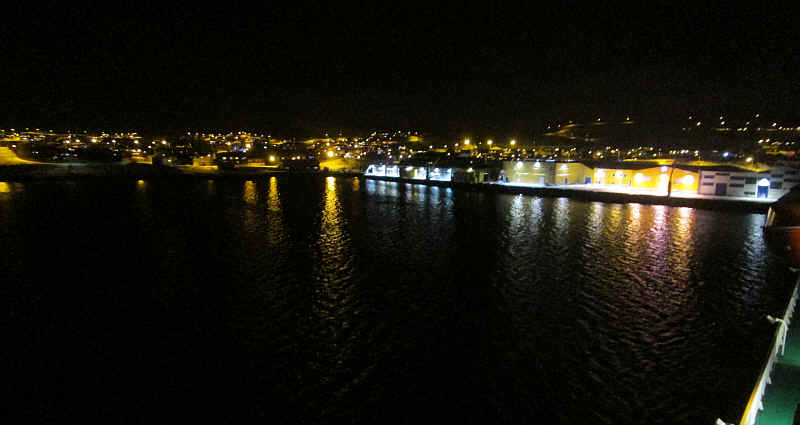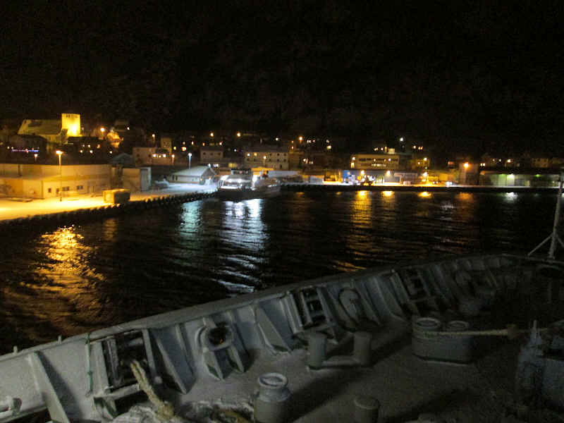 It's nearly half past nine in the morning and the ship is running about half an hour late - this is something that appears to happen throughout the next few days. The photos shows the lights along the southern shore of the fjord leading to the next port of Havøysund. This small town is on the island of Havøya and is linked to the mainland by a bridge.