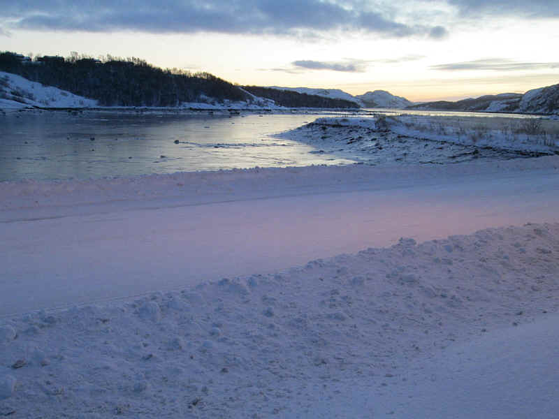 Looking over to the north this is almost the end of Norway with just a few kilometres before the Russian border. The sky to the east is quite bright but the sun doesn't appear over the horizon for two months this far north.