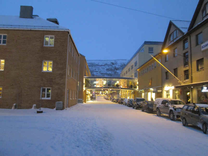 The charter flight from Manchester was by Germania and was uneventful on the way out. A strange experience was that as we headed further north along the Norwegian coast the light steadily dimmed and arrival in Tromsø was of course in the dark. With only cabin baggage we were the first on the two coaches from the airport to the ship. The journey was interesting as the main road into the city goes through road tunnels that used to be nuclear fallout shelters, but have now been converted and have several roundabouts at road junctions in the middle of the tunnel