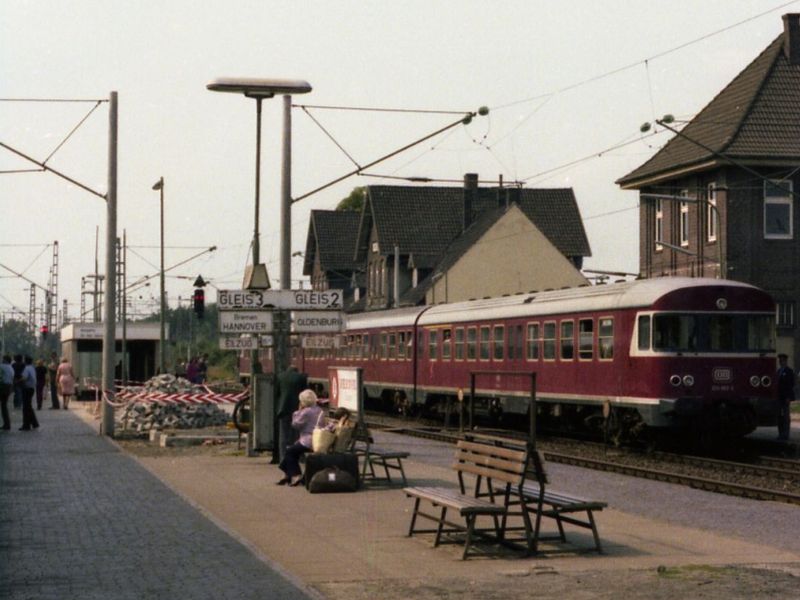 211090 is seen at Essens which was the station where passengers changed for a bus connection to the islands of Langeoog and Spiekeroog.