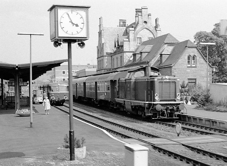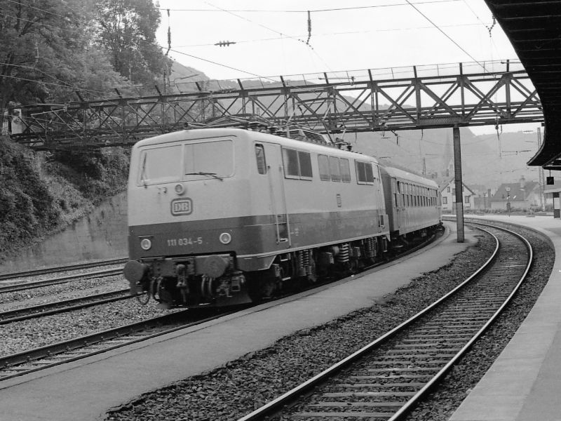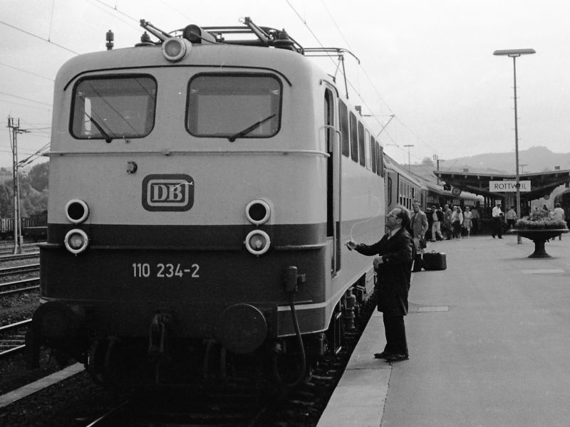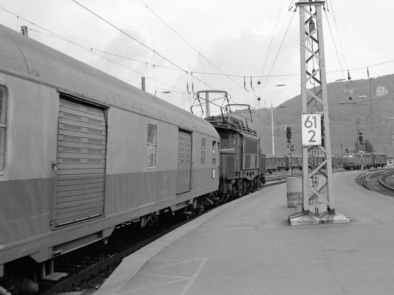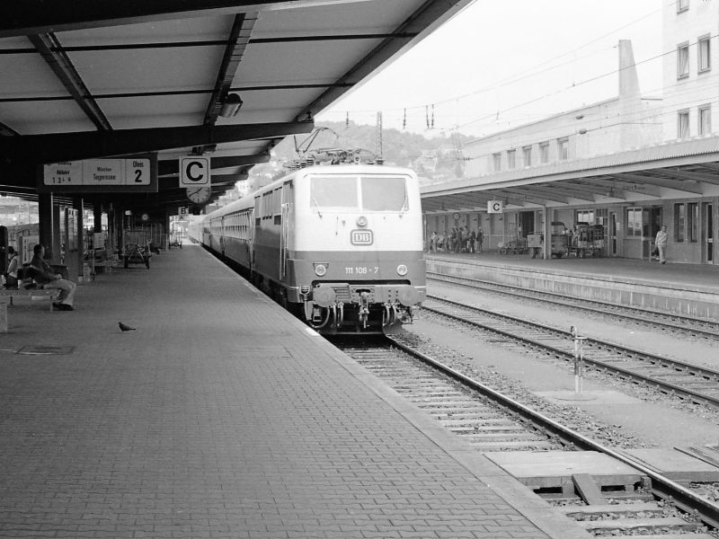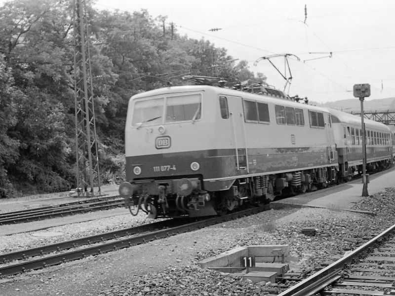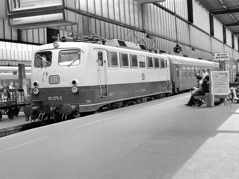 110275 has just arrived with train D296 "Mostar Dalmacija" from Zagreb to Stuttgart made up of Yugoslavian coach. This was still the time of the Gastarbeiter (migrant worker) trains from southern Europe to Germany.