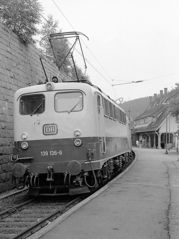 My onward journey from Titisee was on a Freiburg to Konstanz train headed by 139558 and banked up the steep gradients of the Hollentalbahn from Freiburg by 139309.