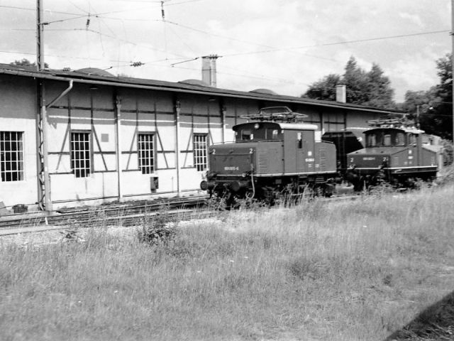 Two of the old Oberammergau branch line BR169 4 wheel electric locomotives were stored outside the shed at Murnau, having been replaced shortly before on the branch passenger trains by BR 141 locos. These two photos show 169003 and 169005.