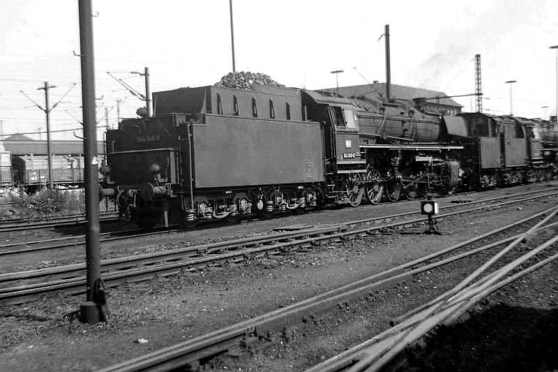 044.948 is seen at Wanne-Eickel shed on 13th July 1970 together with a BR50 fitted with a Kab tender for the guard.
