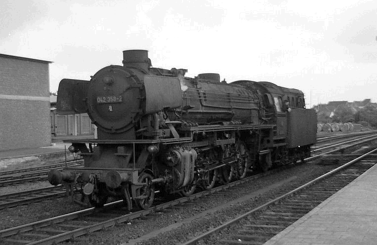 042.358 is running light engine through Rheine station on 3rd July 1970.