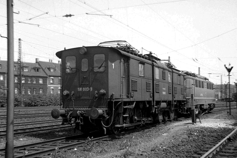 191.003 and a BR140 are at Oberhausen Osterfeld Sud shed on 13th July 1970.