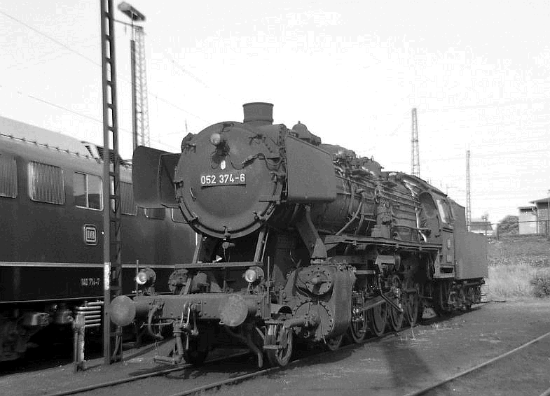 052.374 is at Hamburg Wilhelmsburg shed on 5th July 1970 next to electric loco 140.714.
