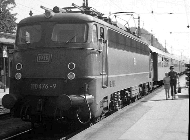 110.476 is at Jenbach in Austria with a Dortmund to Innsbrück train on 27th July1971.