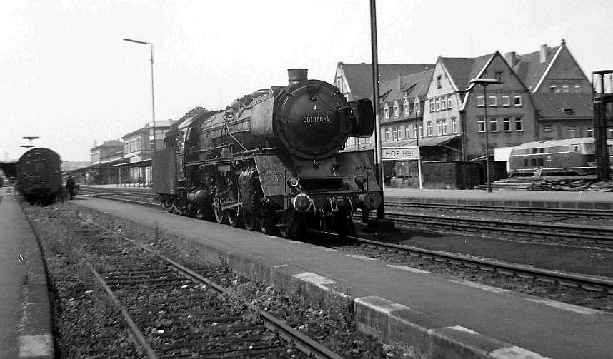 001.168 backs down onto its train at Hof on 23rd July 1971.