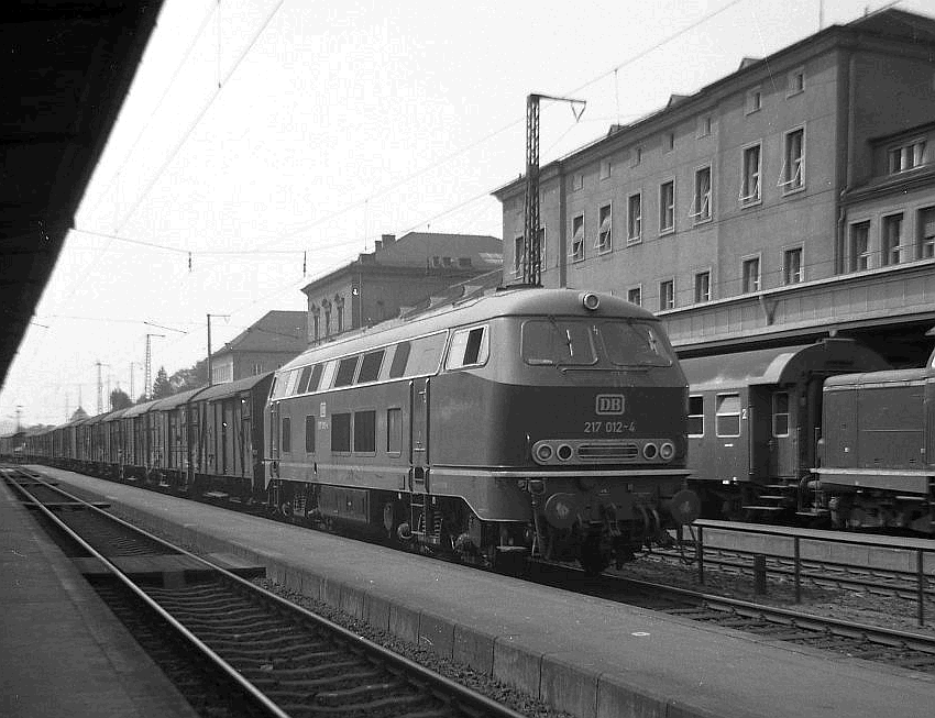 217.012 heads a southbound freight through Regensburg Hbf on 24th July 1971.