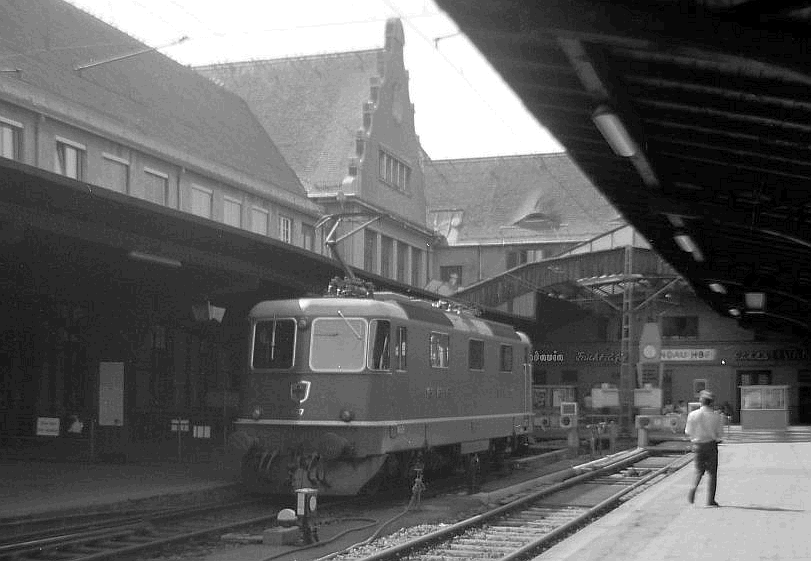 Swiss Federal Railways 11197 has brought in a Bern to München train at Lindau on 29th July 1971.