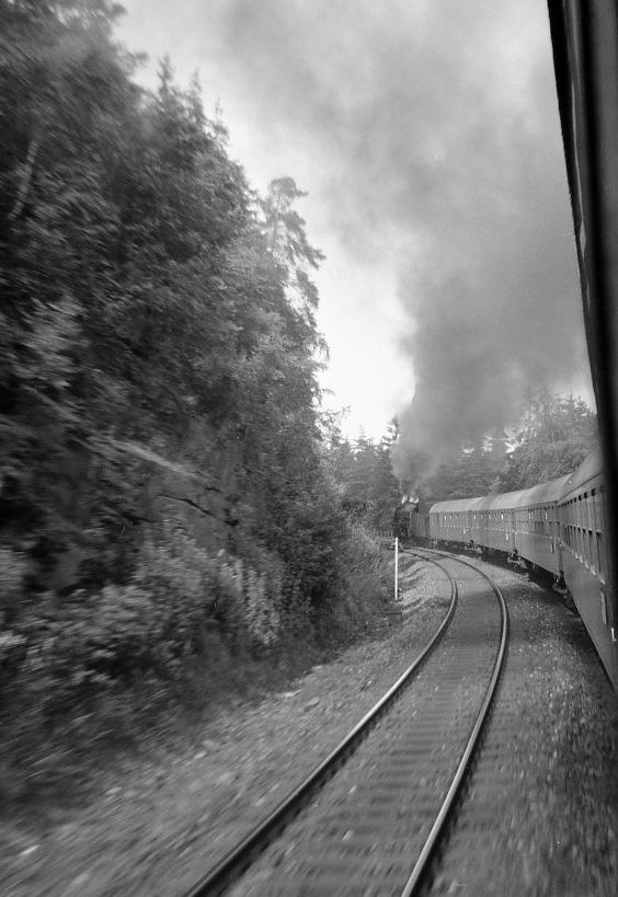 001.131 is seen climbing the Schiefe Ebene incline at Neuenmarkt Wirsberg. The train is a Saarbrücken to Hof train. The date is 22nd July 1971.