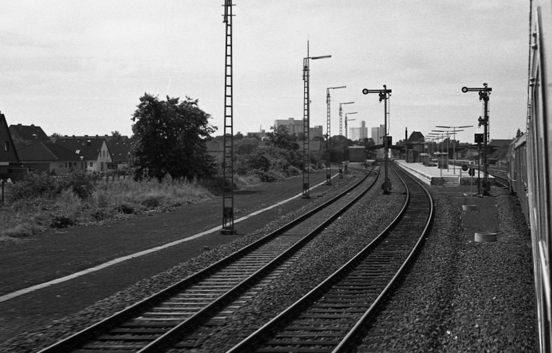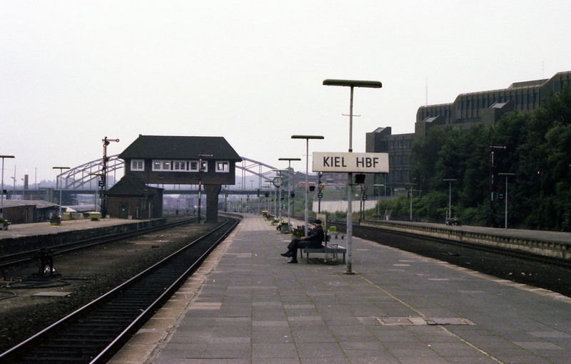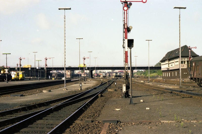 Looking towards Hamburg with Lübeck P (Personenbahnhof) signal box and the loco depot in the distance