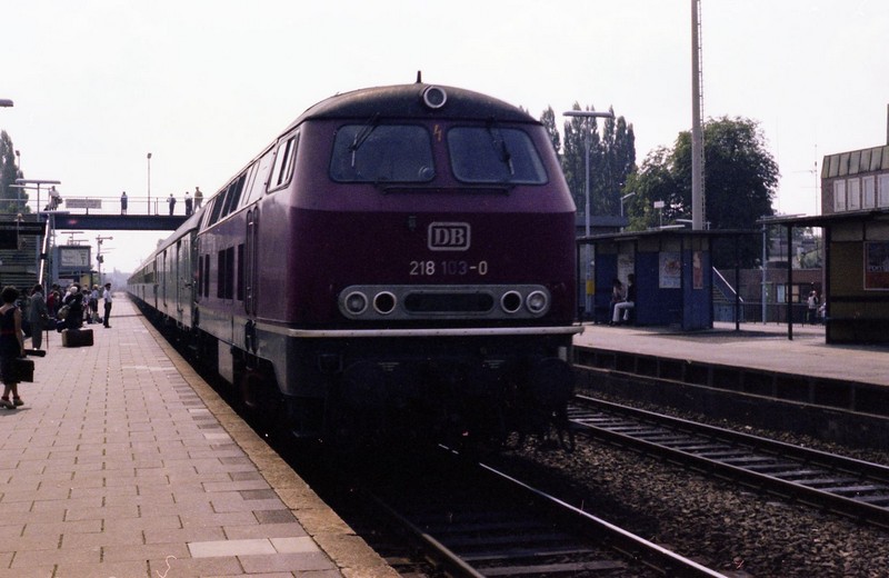 Itzehoe station with 218.120 on a Hamburg to Heide local stopping train.