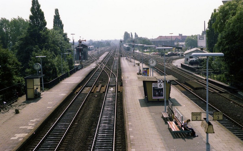 Looking the opposite direction with the line to Kiel straight ahead and the line to Denmark which curves to the right around the town to cross over the line from Hamburg before heading over the border to Padborg.
