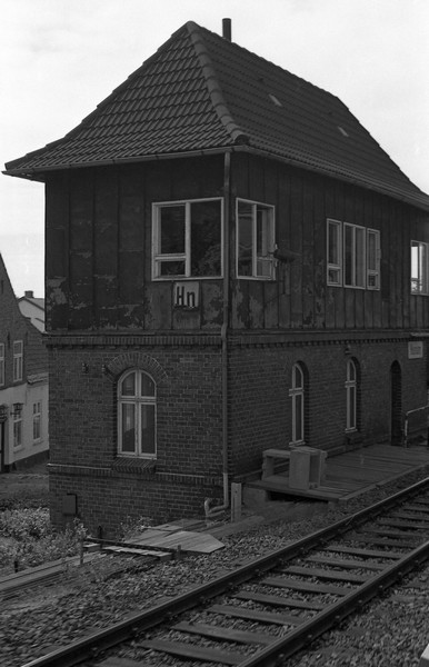 The former Bad Oldesloe Nord signal box. Just visible under the plate with "A56" on are the letters "On". By this time it was no longer a signal box but was used to control the level crossing.