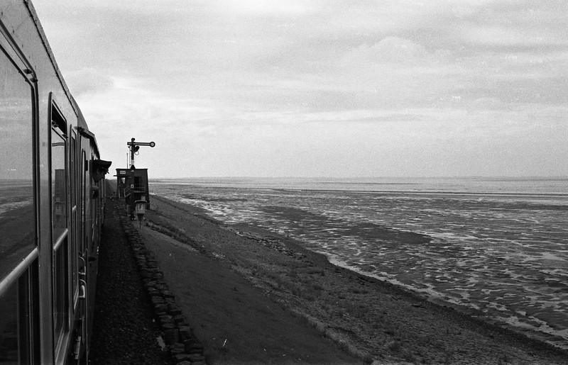 The signal box on the Hindenburgdamm where the railway crosses the causeway to the island of Sylt.