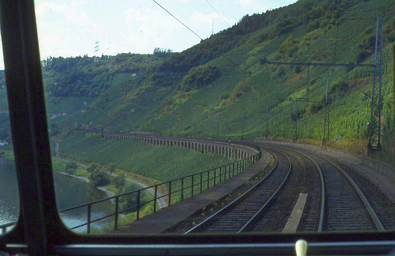 The Pünderich hanging viaduct by the River Mosel seen from 798705 on way to Traban-Trabach.