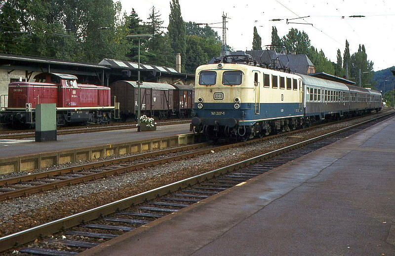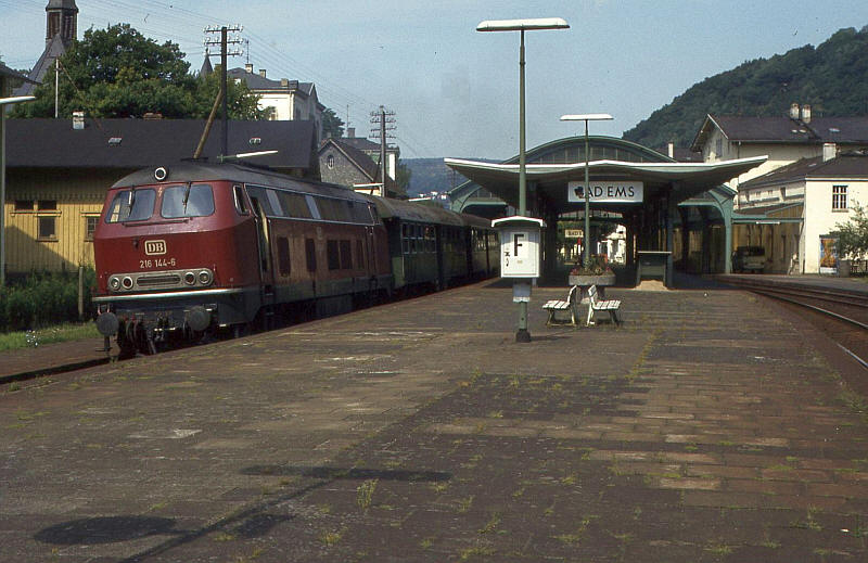 216144 at Bad Ems with a Koblenz to Limburg train.