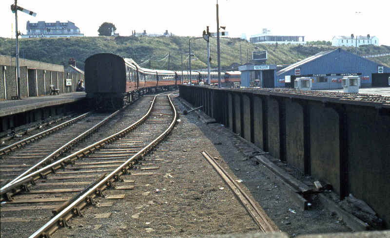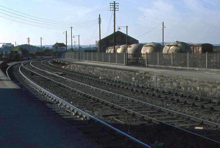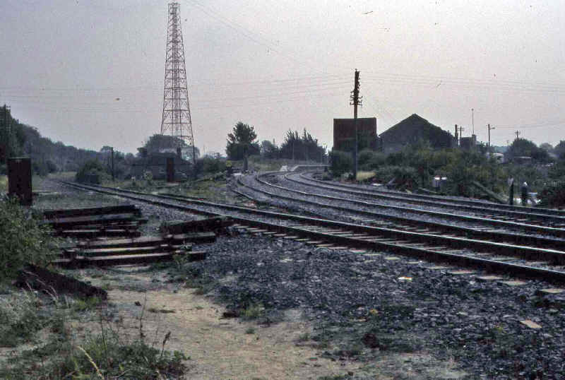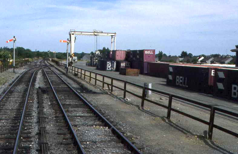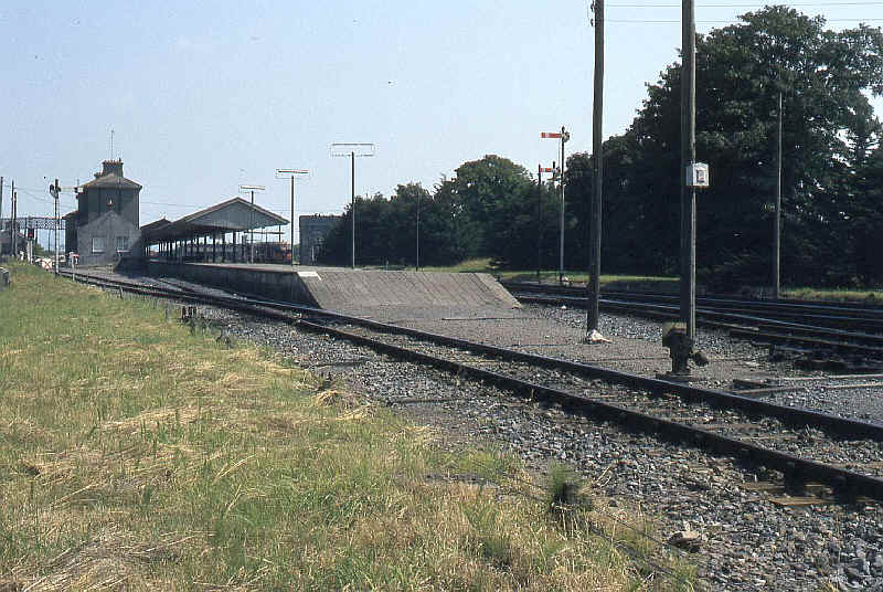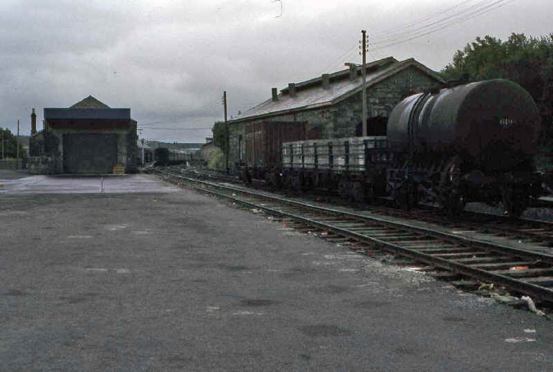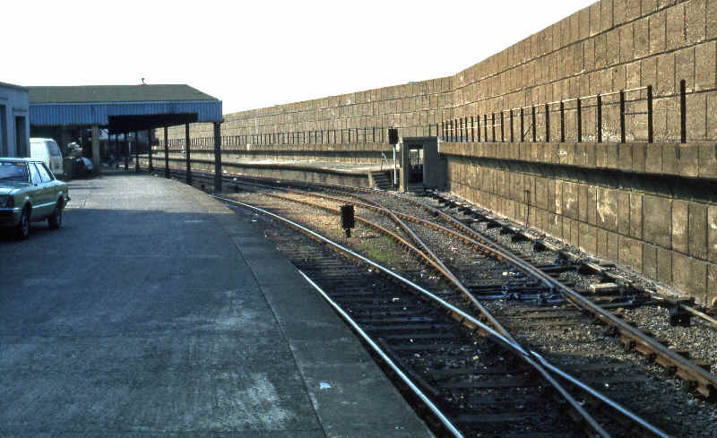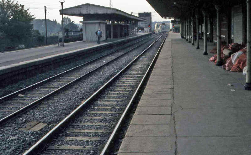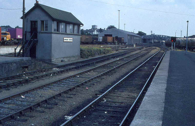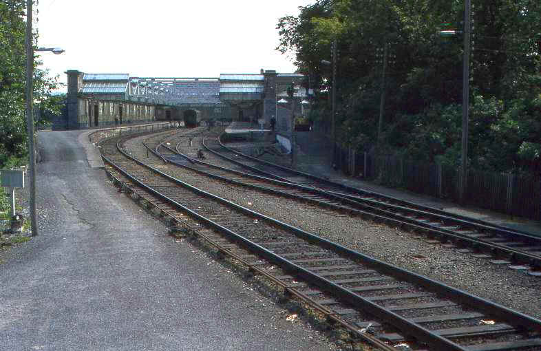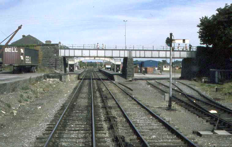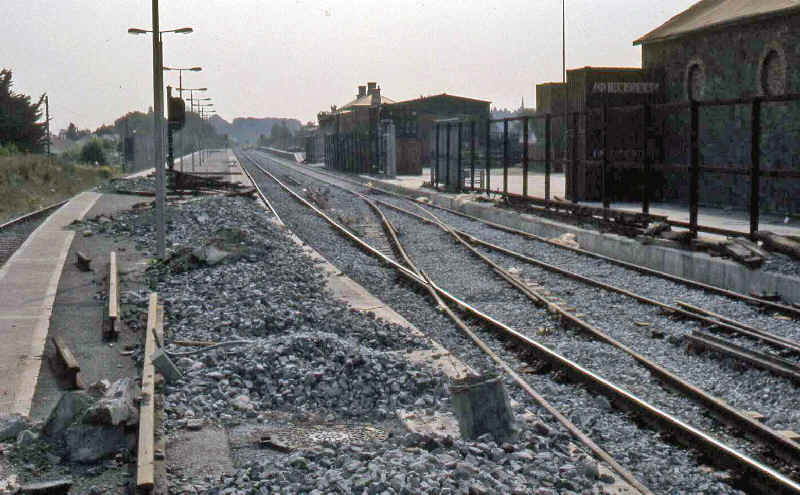 Looking north: on the left the Limerick bay platform and on the right the main line platform, then the two through roads and the old locomotive shed.