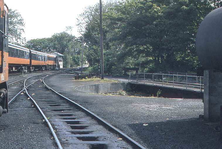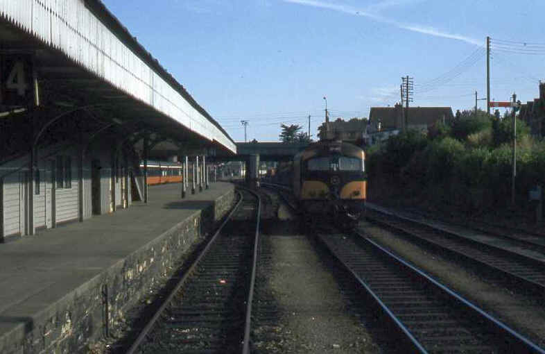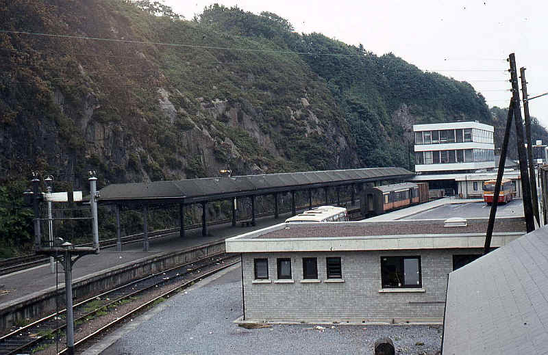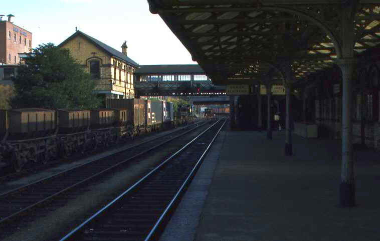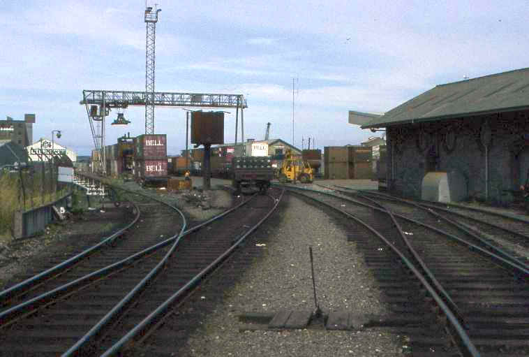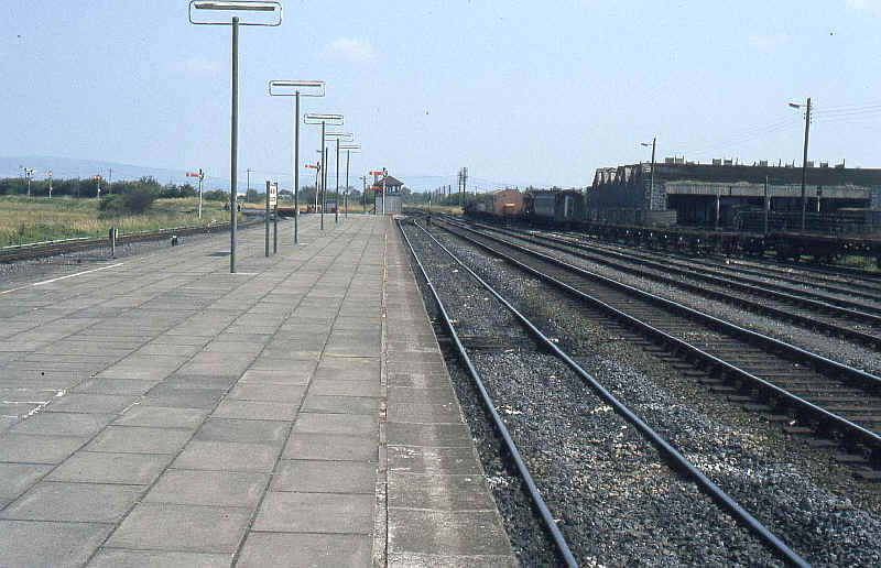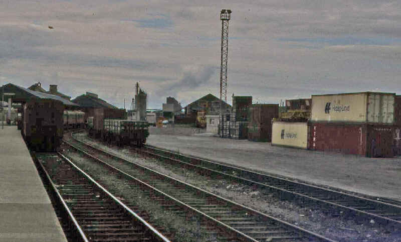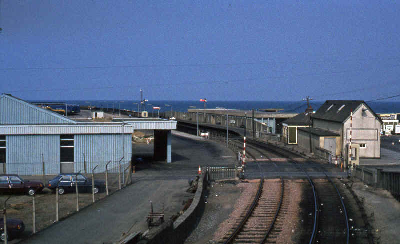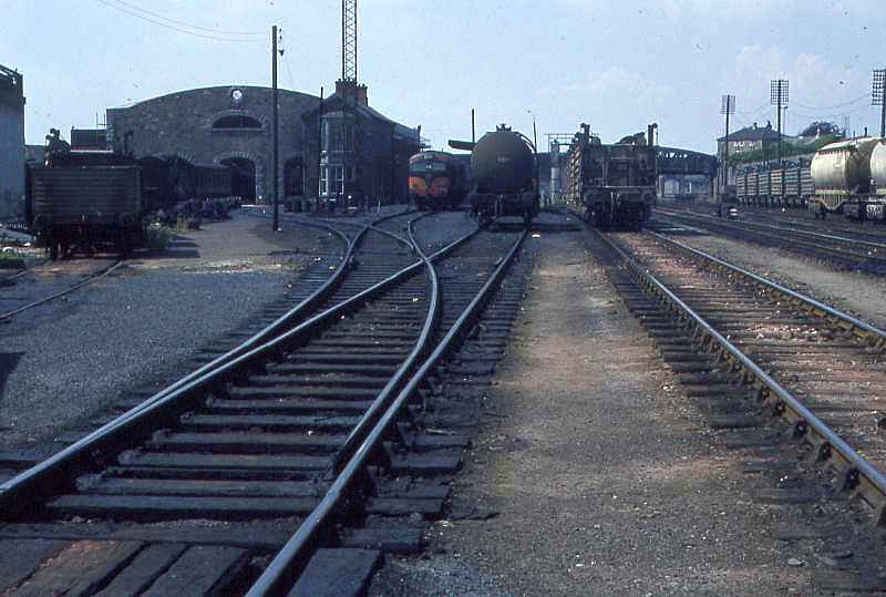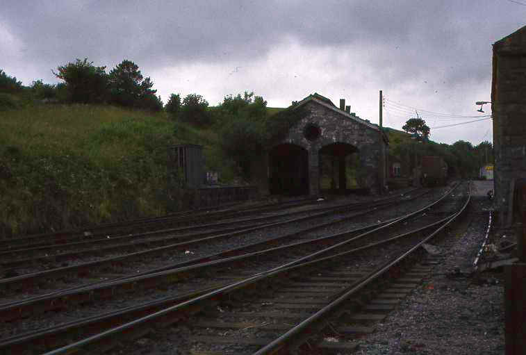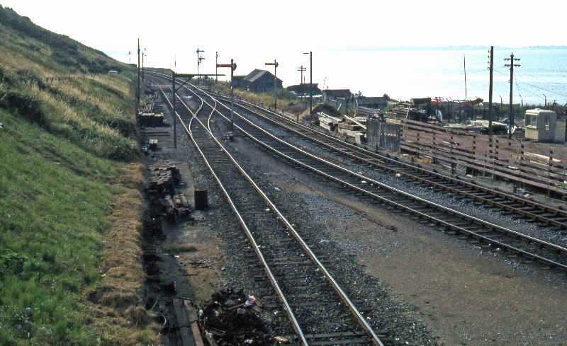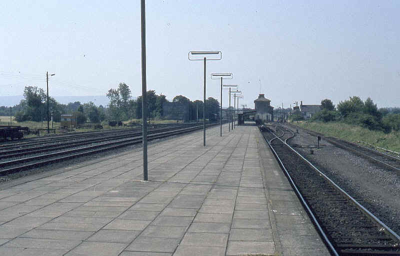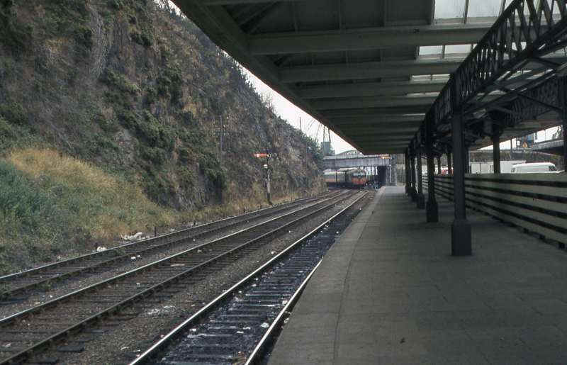 Looking north: on the left the Limerick bay platform and on the right the main line platform, then the two through roads and the old locomotive shed.
