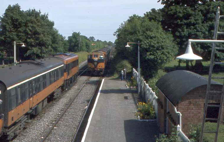 This is 076 runs no stop through Kildare with the 17.30 Dublin to Cork train passing 075 on a Tralee to Dublin service.