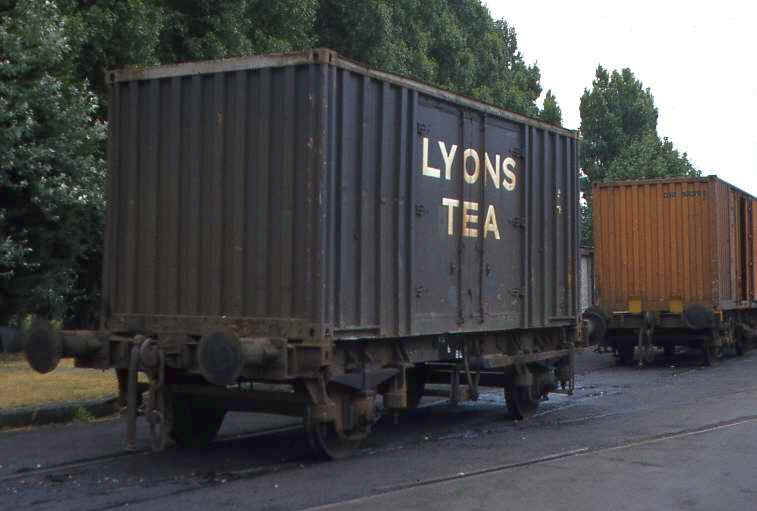 4-wheel flat with uniload container. In the background is a CIE school bus.