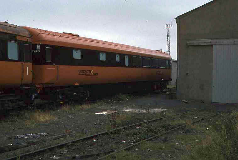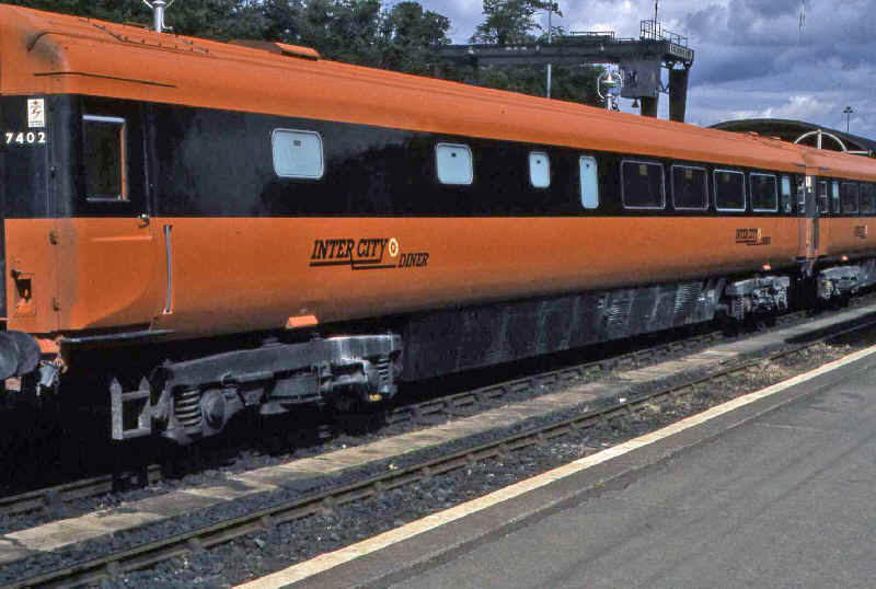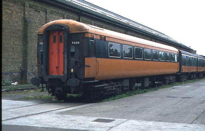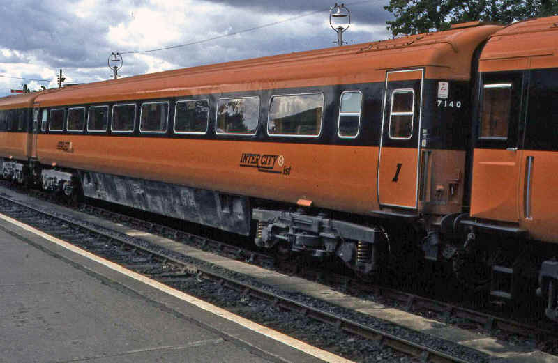 A Mark 2 Supertrain 2nd class coach and beyond a former BR Mark 1 steam heating van.