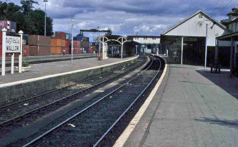 The Dublin end of mallow station with the former line to Waterford branching off to the right.
