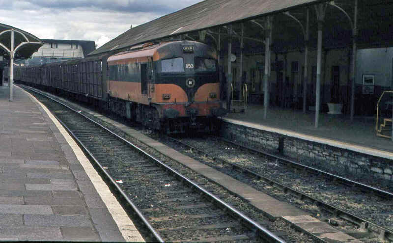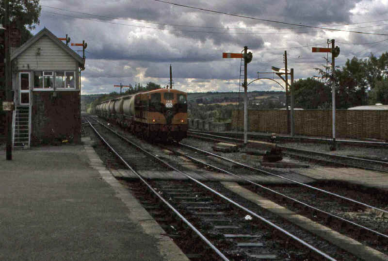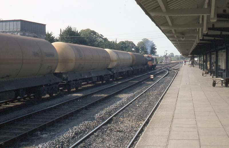 Limerick Junction with 013 at the head of a Shelton to Cork ammonia train. Note the long platform with crossover to allow both north and southbound main line trains to call simultaneously.