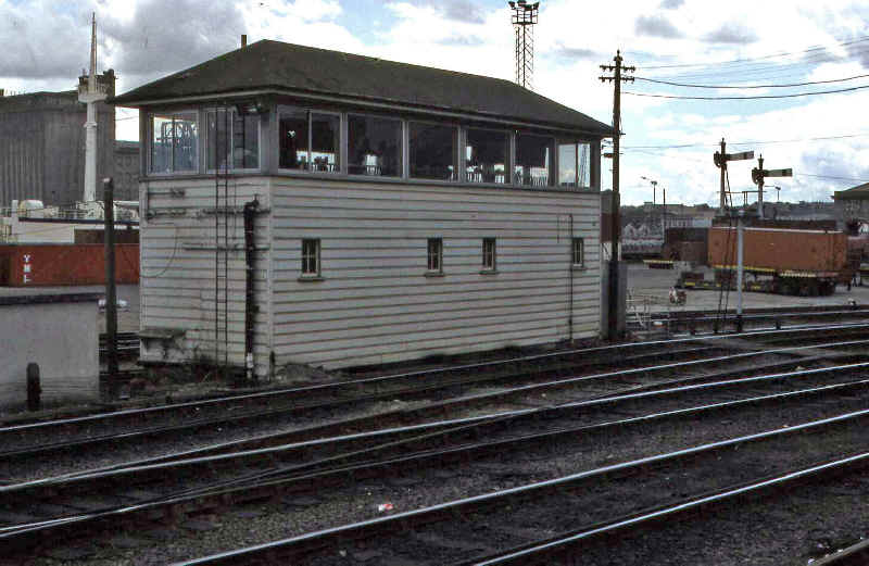 Carrick on Suir signal box. Note the CIE standard open wagons with corrugated sides.