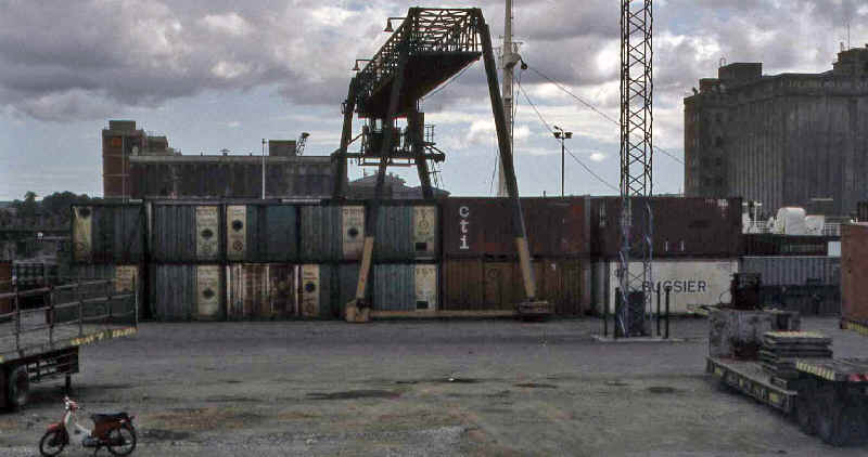 In the container terminal is the previous night's arrival from Dublin conveying containers for Asahi.
